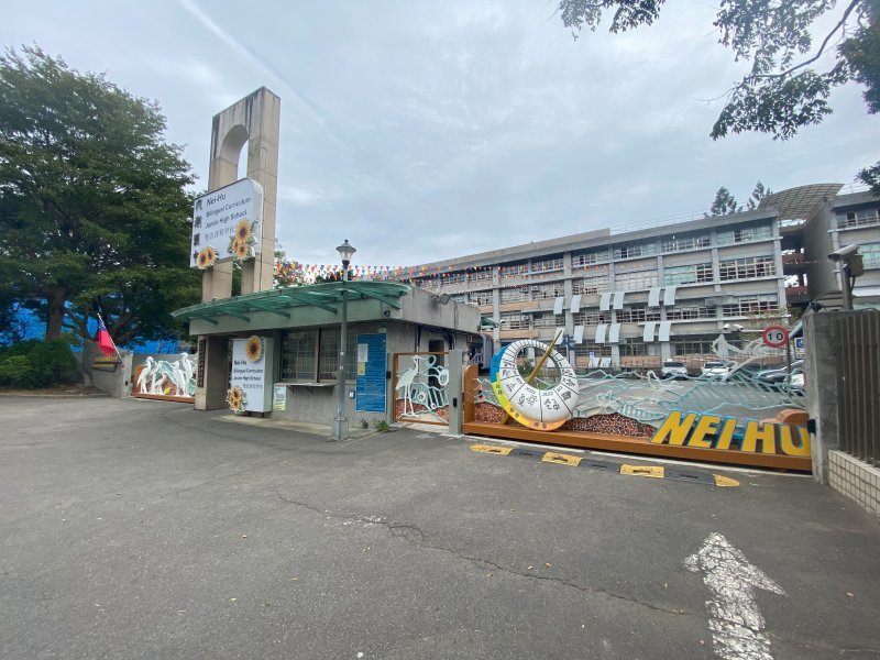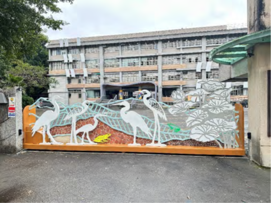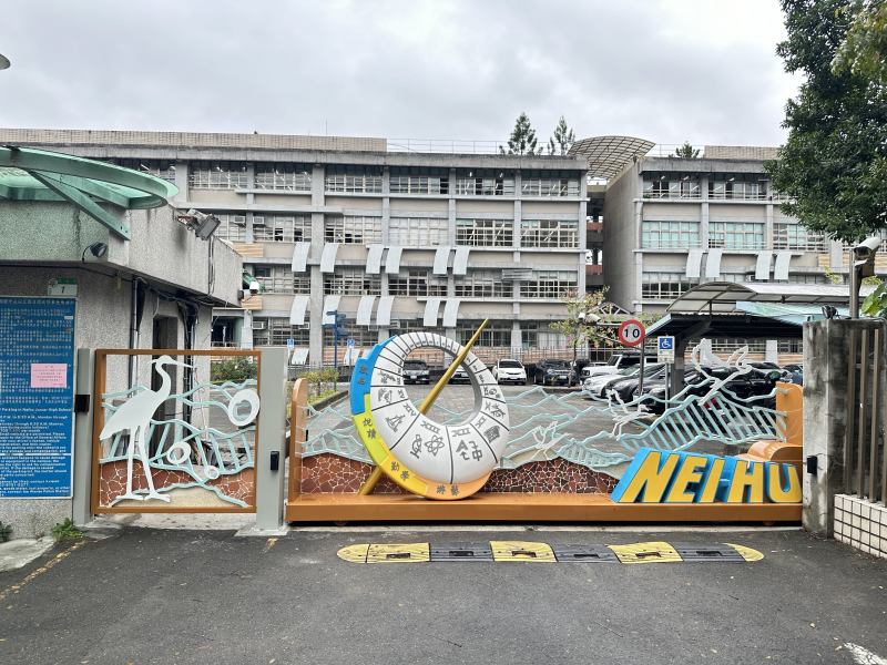 The two main themes, "The Lake and the Scenery" and "Education Takes Flight", are respectively placed on the left and right sides of the school gate. This showcases Neihu Junior High School's historical journey from the past to the present and into the future, developing it into a tomorrow's rising star with diverse development.